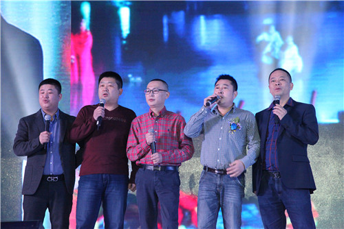 由洛陽(yáng)色彩朱銳總經(jīng)理、煙臺(tái)小小潤(rùn)美姜旭輝總經(jīng)理、蘇州美麗春天張勇總經(jīng)理、遵義嬌傲日化莊劍輝總經(jīng)理及吉林長(zhǎng)風(fēng)于明亮總經(jīng)理5位嘉賓共同合唱了《我的好兄弟》。