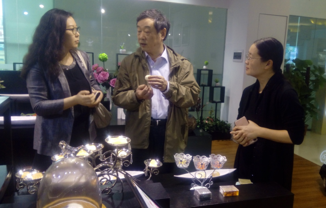 2017年2月22日,中國(guó)香料香精化妝品工業(yè)協(xié)會(huì)理事長(zhǎng)陳少軍先生、中國(guó)香料香精化妝品工業(yè)協(xié)會(huì)項(xiàng)目合作部副主任王婷婷女士,蒞臨棟方股份考察交流。棟方股份董事長(zhǎng)唐新明、技術(shù)顧問(wèn)曾颯博士、技術(shù)研究部高合意工程師陪同參觀。