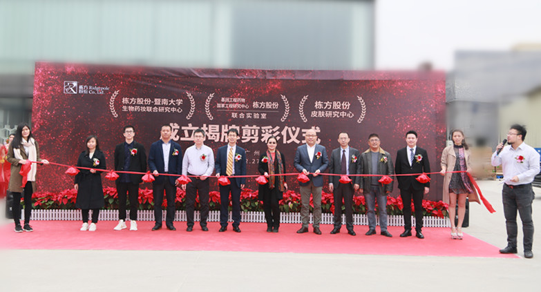 2018年12月27日上午,棟方股份技術(shù)合作揭牌剪彩活動(dòng)在公司技術(shù)研究大樓一樓廣場(chǎng)隆重舉行,正式成立了“棟方股份--暨南大學(xué)生物藥妝聯(lián)合研究中心”、“棟方股份--基因工程藥物國(guó)家工程研究中心聯(lián)合實(shí)驗(yàn)室”、“棟方股份皮膚研究中心”三大研究中心。此次生物藥妝技術(shù)重磅合作,在棟方技術(shù)創(chuàng)新發(fā)展史上具有重大里程碑意義。