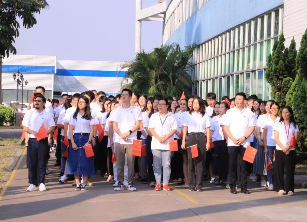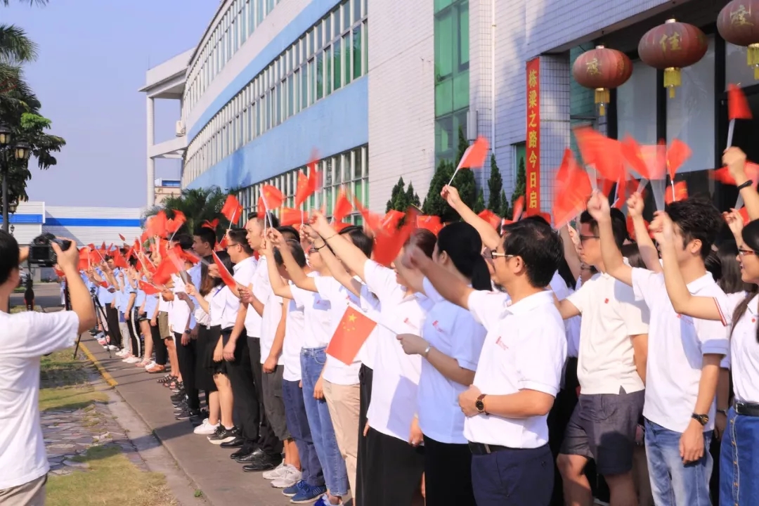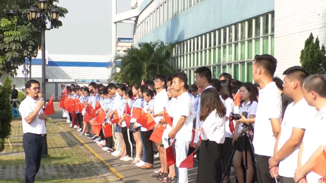 2019年9月30日,星期一,十一國慶節(jié)前夕,棟方股份公司大樓前面空地、數(shù)百次國旗升起的地方,今天迎來了一次特殊的周一升國旗儀式,因為明天就是我們偉大祖國母親的七十華誕,七十載壯麗歷程,賦予了今天棟方企業(yè)早會升旗儀式不同尋常的意義。