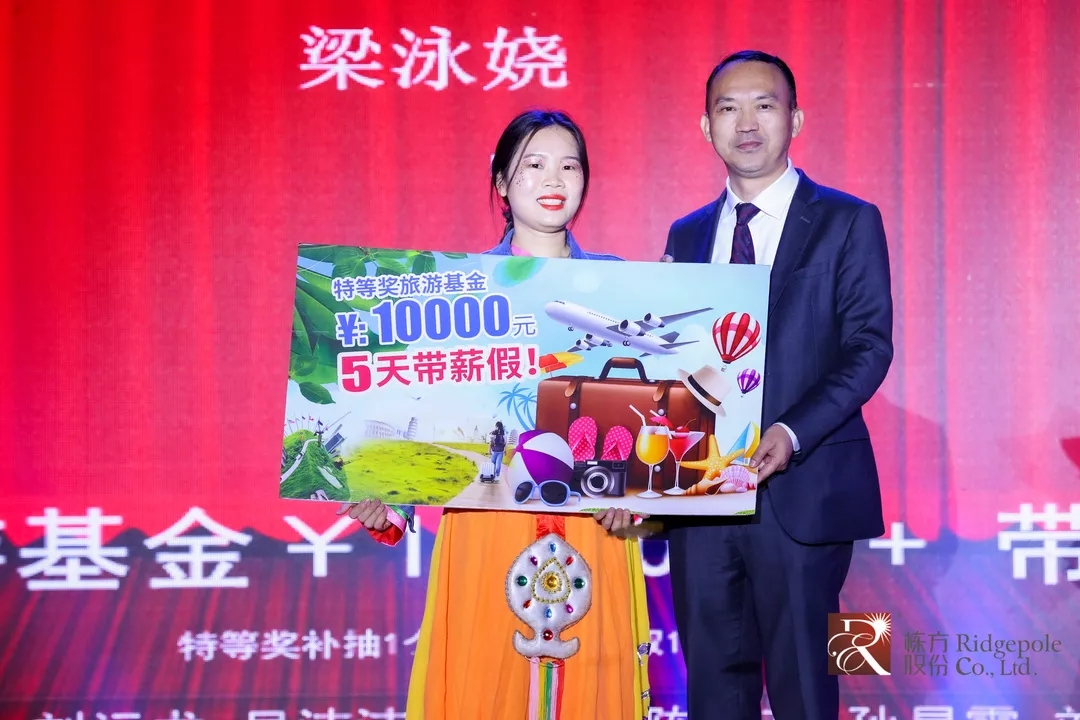 今年,公司為員工精心準(zhǔn)備的獎(jiǎng)品除現(xiàn)金紅包、紀(jì)念金鈔外,還有華為手機(jī)以及萬(wàn)元家庭游豪華大獎(jiǎng)。