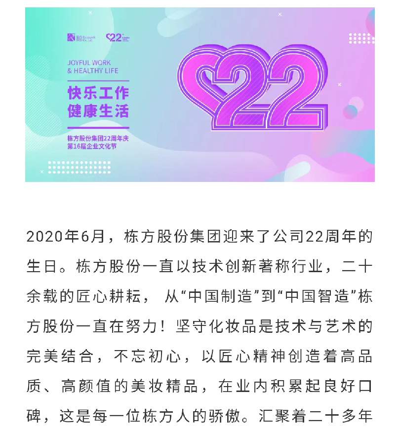 礪程二十二載,我們創(chuàng)造美麗丨熱烈慶祝棟方股份集團創(chuàng)立22周年