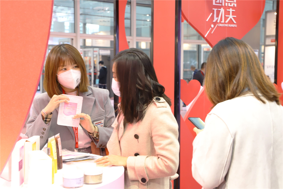 創(chuàng)意升級(jí),科技加碼,棟方股份館內(nèi)陳列眾多創(chuàng)意星品。輕醫(yī)美、植物有機(jī)、精油、花瓣添加、彩妝、香水等全部美妝品類產(chǎn)品展現(xiàn)眼前,向每一位駐足參觀的客戶,展示著棟方股份技術(shù)與藝術(shù)完美結(jié)合的創(chuàng)新成果。
