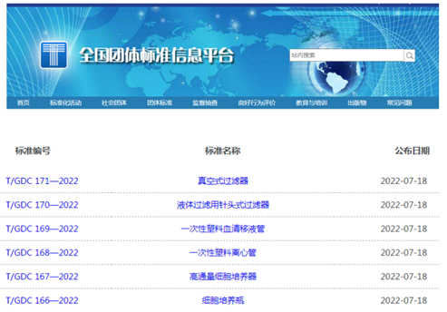 近日,由廣州潔特生物過濾股份有限公司牽頭制定的《細胞培養(yǎng)瓶》《高通量細胞培養(yǎng)器》《一次性塑料離心管》《一次性塑料血清移液管》《液體過濾用針頭式過濾器》《真空式過濾器》6項生物實驗室耗材系列團體標準在國家官方平臺獲得正式發(fā)布。該6項標準由潔特生物作為牽頭單位,聯(lián)合泰坦科技,諾唯贊生物,海貍生物等多家行業(yè)企業(yè),以及中科檢測、廣醫(yī)三院等單位聯(lián)合制定,來自廣東省科學院微生物研究所等多家單位組成的專家組對標準進行專業(yè)審議,標準最終通過專家審定,并成功獲批發(fā)布。