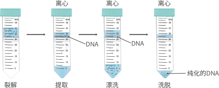 原理:通過(guò)解離后表面大量帶負(fù)電的硅羥基(Si-OH)與帶正電鹽離子、帶負(fù)電DNA形成電橋,從而吸附住基因組DNA,實(shí)現(xiàn)純化分離。