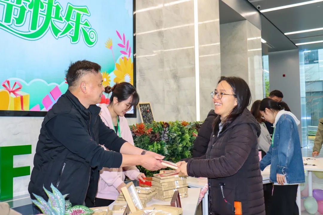 首先是驚喜盲盒禮派送活動,特別邀請了潔特生物總經(jīng)理James、副總經(jīng)理吳志義等男士化身“驚喜使者”,親手為女性員工派發(fā)盲盒禮。