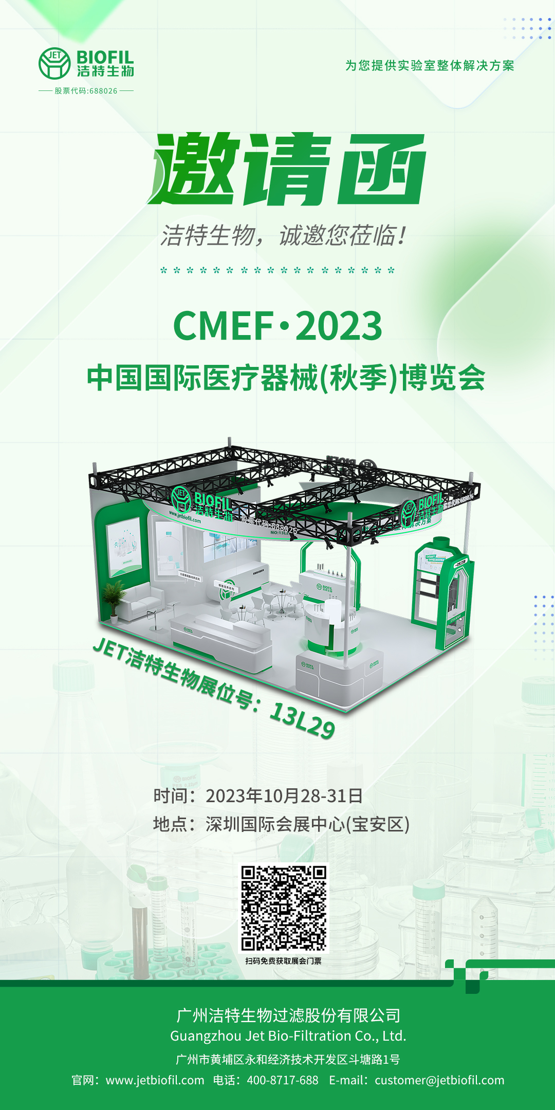 JET潔特生物展位號(hào):G64-6, Hall 6